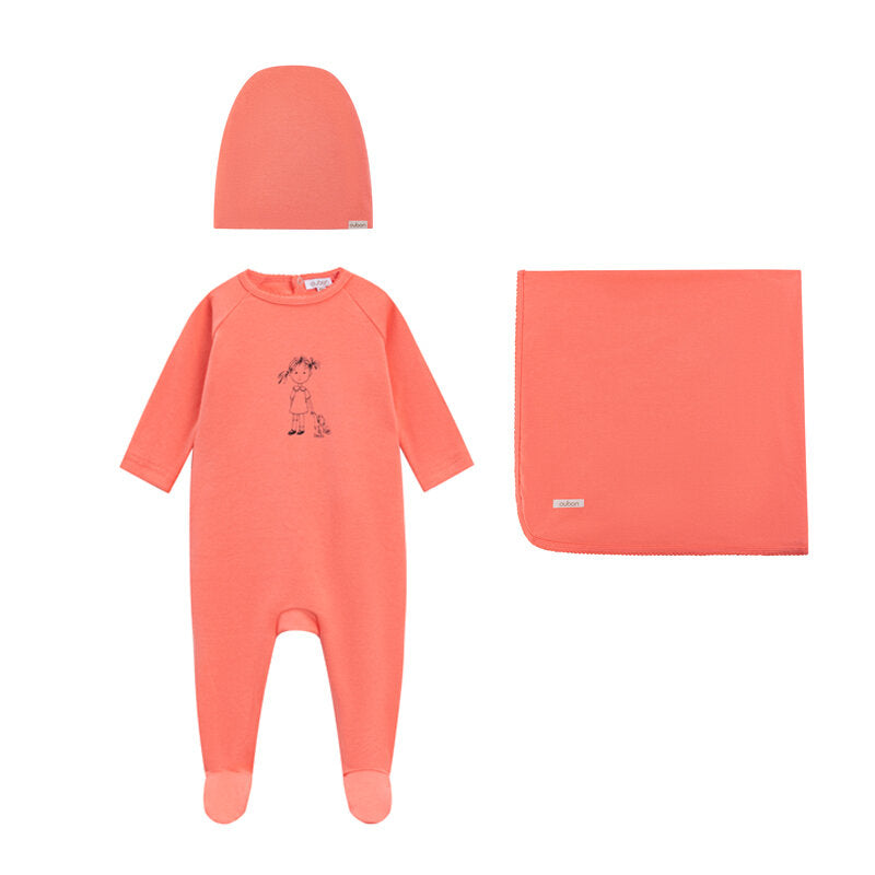 Add the perfect finishing touch with our matching blanket, crafted from the same soft cotton and featuring the coordinating Doll Footie. Ideal for snuggles at home or on the go, it’s both practical and beautifully designed to match the full look.