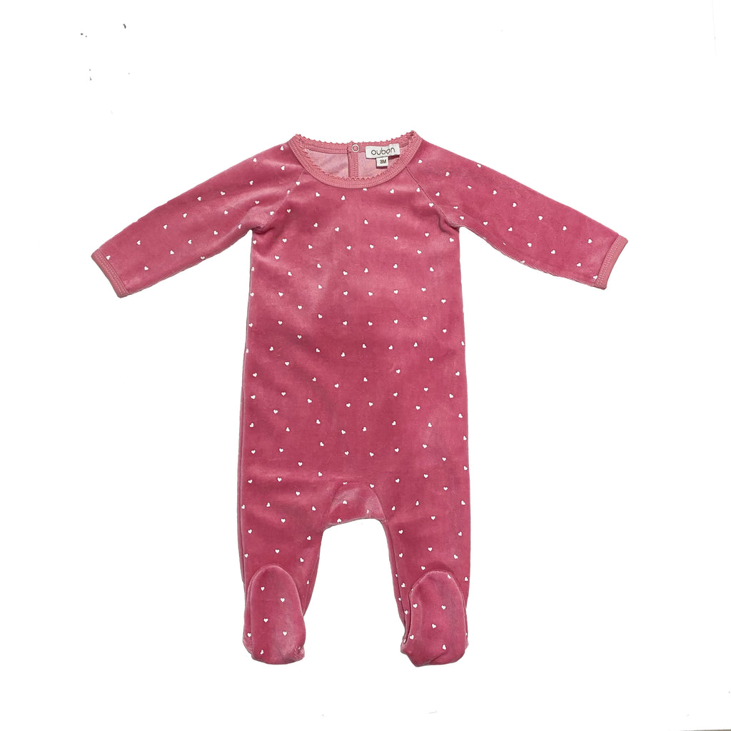 Made with soft velour and featuring an adorable heart all over print, this velour footie one piece will keep your baby cozy and looking oh-so-cute. Perfect for snuggles and playtime.