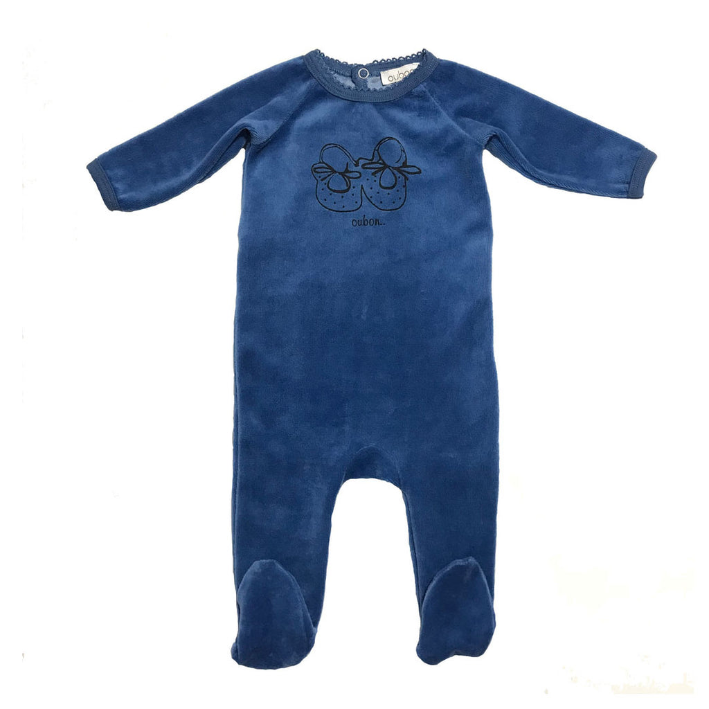 This one-of-a-kind OUBON Velour One Piece Blue is the perfect addition to your baby's wardrobe. Made from cozy velour and featuring a playful shoe print design, this footie will keep your little one comfortable and stylish all day long. Plus, it's super easy to put on and take off for quick diaper changes!