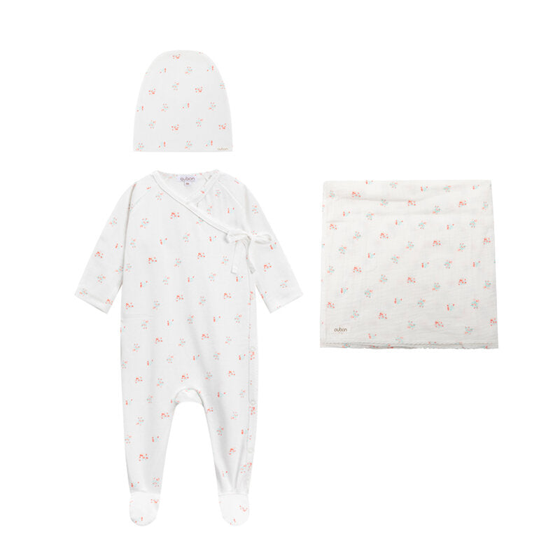 Welcome your little fashionista with our Red Floral Print Take Me Home Set. Designed in Paris for a touch of European elegance, this set features an all over small Red floral print footie, and an optional matching hat for added adorableness. Keep your baby stylish and cozy with this perfect gift, including a footie, matching hat, and blanket.