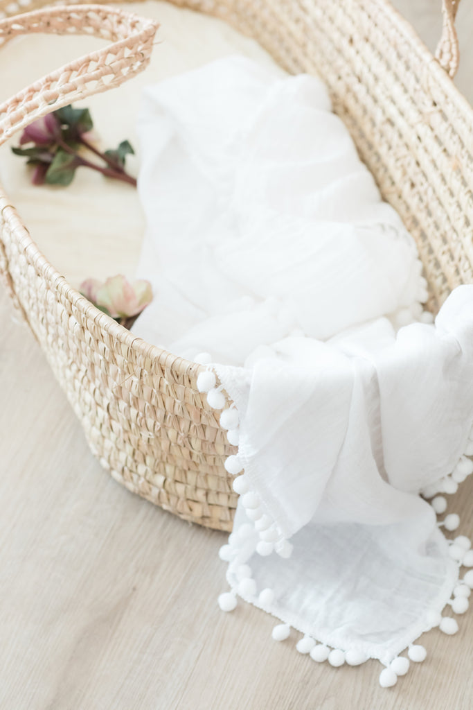 Muslin Pom Pom Swaddle