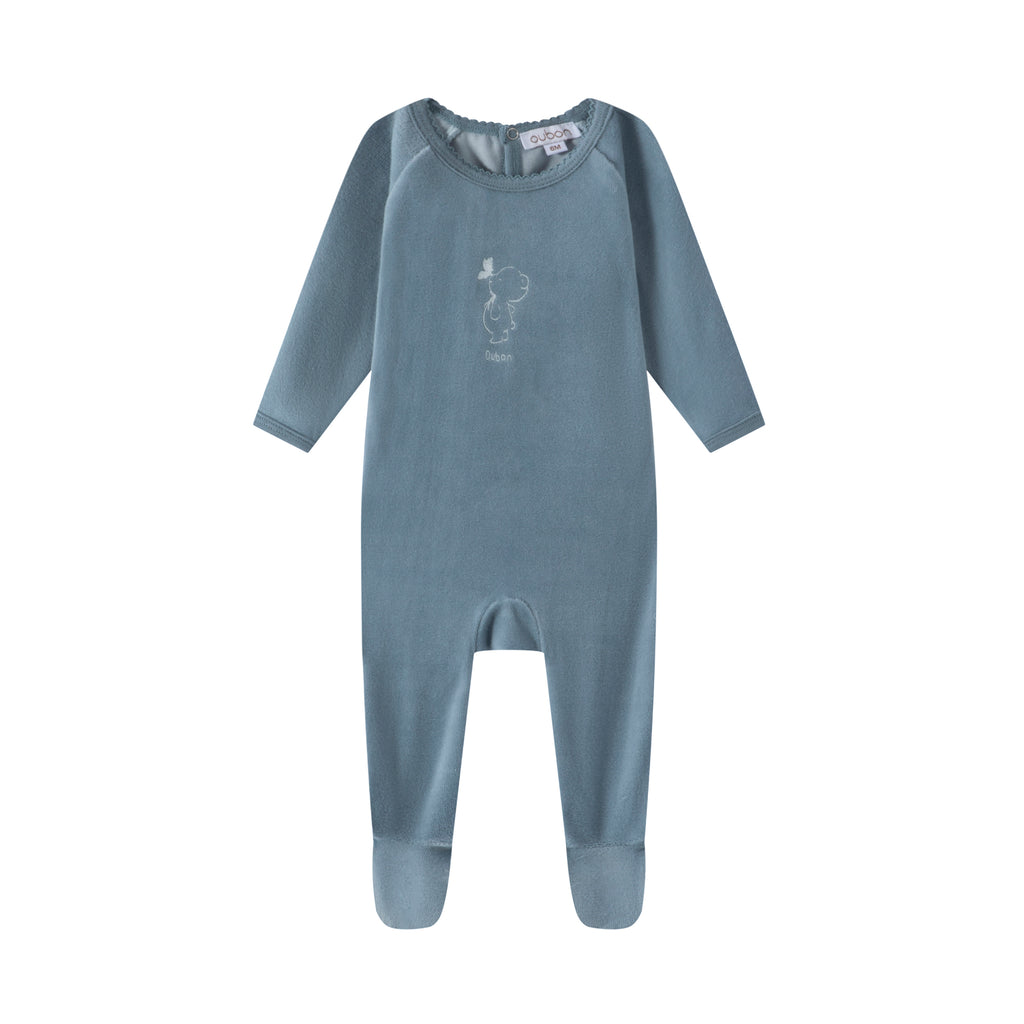 Velour Bear Print-Boy's Footie