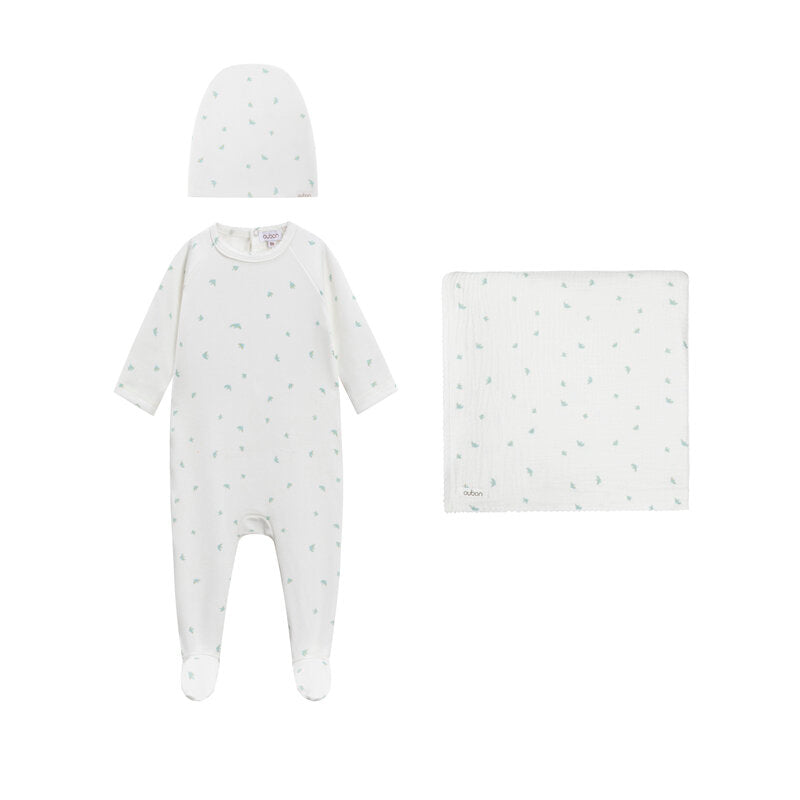 Take your baby home in style with our White Ground Blue Bird Take Me Home Set! The charming blue bird print on a soft white cotton background adds a touch of whimsy to this set, which includes a footie swaddle and hat. Perfect for keeping your little one cozy and cute. (Tweet, tweet!)