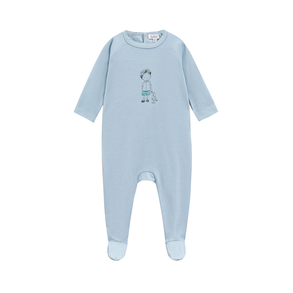 Transform your baby's outfit into a whimsical and adorable ensemble with our Doll Footie in Blue. Featuring a charming print of a doll playing with teddy bear, this footie adds a touch of playfulness to your little one's look. Your baby will look absolutely precious in this delightful piece!