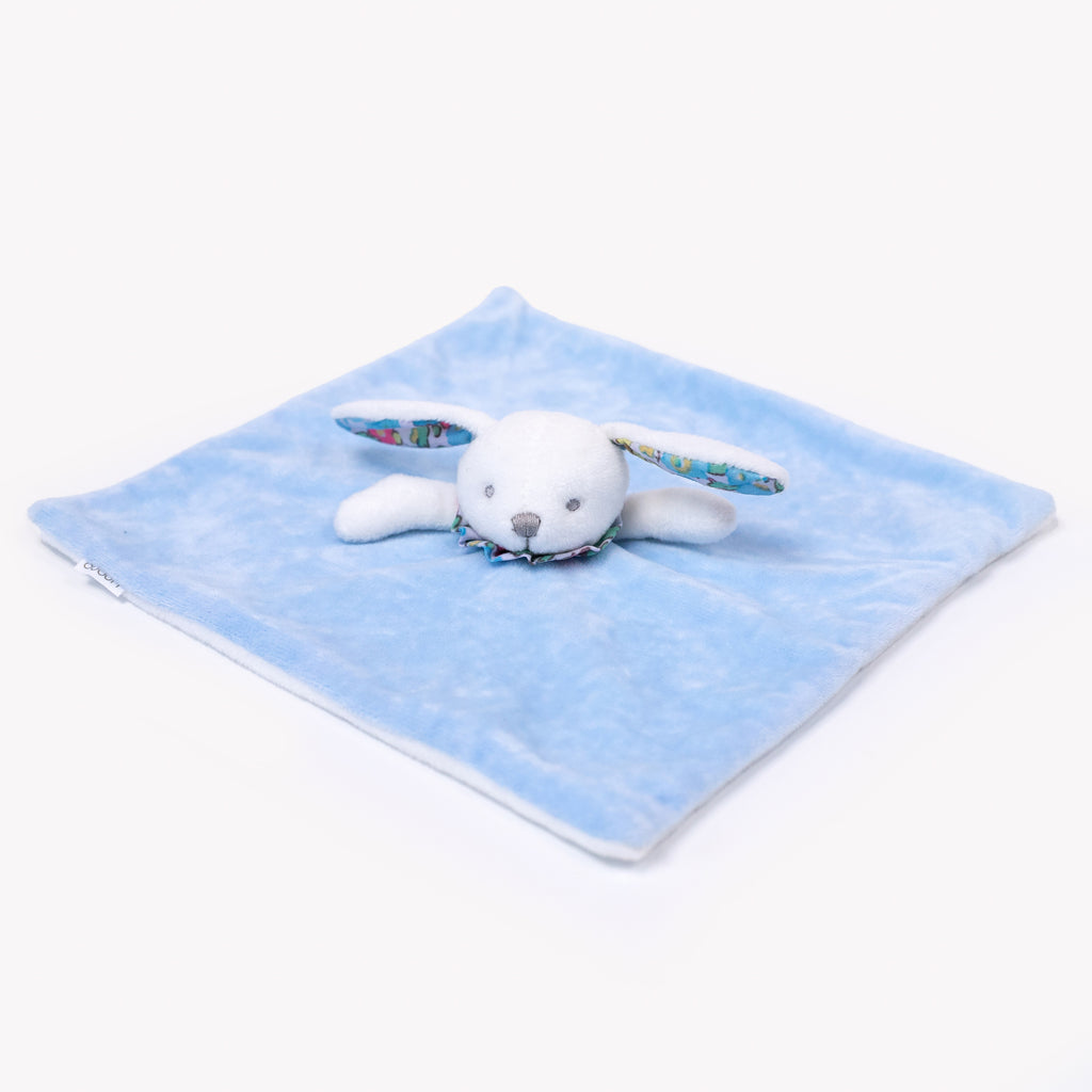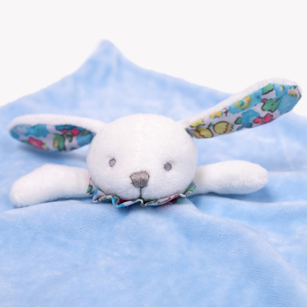 Give your baby the gift of security with our whimsical plush bunny rabbit security blanket. An infant favorite for decades, the velour security blanket goes wherever baby goes. Liberty print trim detail and soft cotton velour will make this little toy an indispensable item in your baby’s nursery.