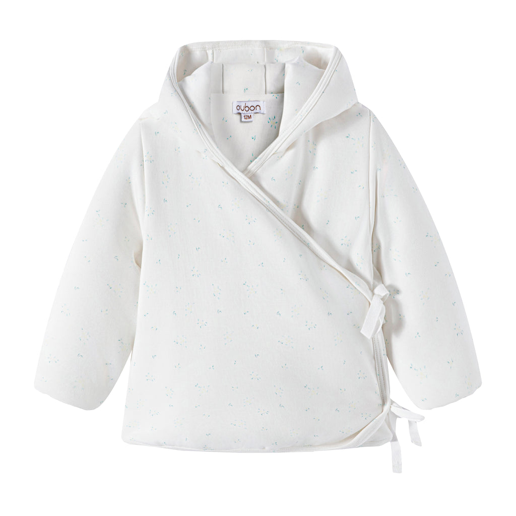 Indulge in luxury with our Blue & Yellow Floral Print Wrap Jacket. Made from the finest cotton, this Footie boasts a delicate yellow and blue floral design, imagined in Paris by skilled designers. Wrap your little one in comfort and style and don't forget to add a matching hat.